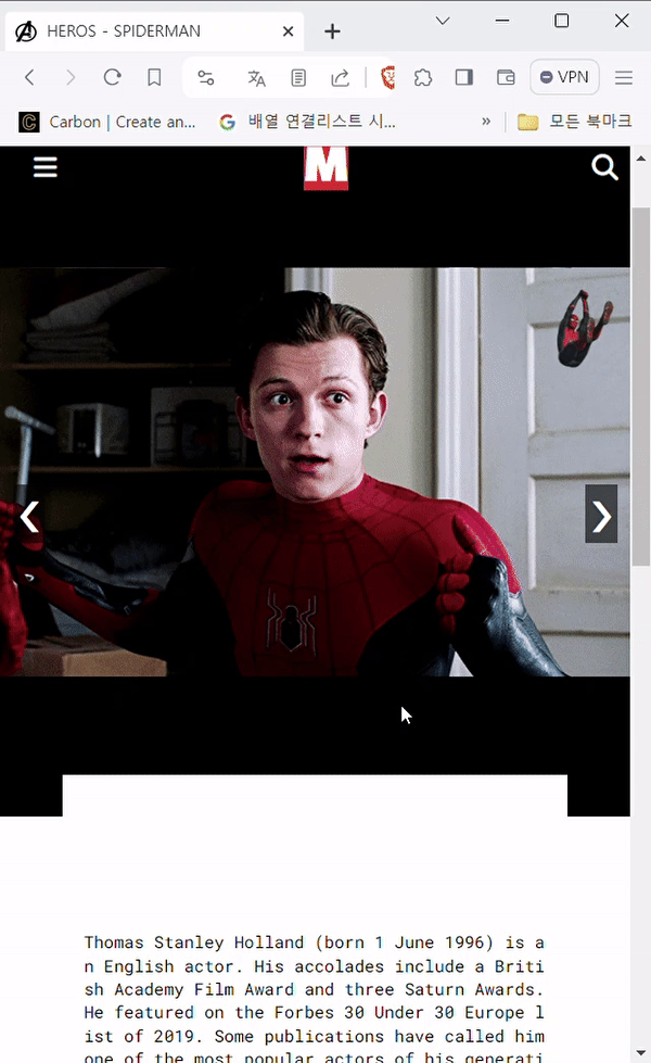 3. Moblie 버전에서 이미지가 상, 하단에 도착 직후 스크롤 시 화면 바깥으로 나간 것으로 인식되어 reset이 실행되는 작은 버그가 발생한다.