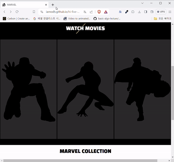 Marvel 프로젝트의 index의 히어로 선택 박스에 어떤 애니메이션을 넣을까 고민하다 고전 게임에서 자주 보았던 캐릭터 선택 효과를 이용하기로 했다.
