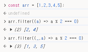 두 번째 filter는 arr의 index를 나타내는 a 인자를 사용한다. (첫 인자는 _로 건너 뜀)