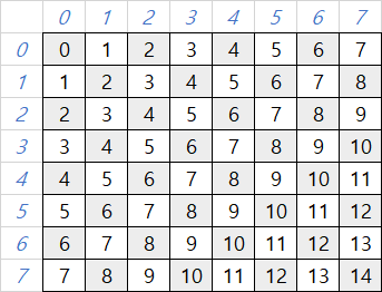 다음 이차원 배열의 성질을 이용해 체스판의 특정 칸에 접근할 수 있다.
